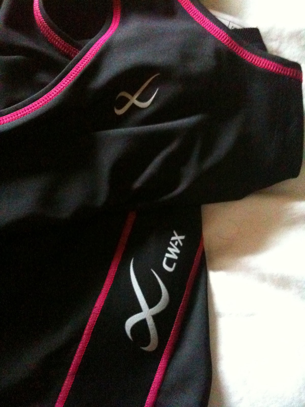 This week has been amazing from doing my longest run to date 33.5 miles and overcoming a fear of the distance. It was followed up by an email Monday morning saying I was the newest athlete of the CW-X Compression Wear team. I am very excited an honored to be aligned with such a great company that makes amazing gear to aid in my training and racing goals. The other athletes they sponsor are amazing and I am excited to now be among them! Wednesday after a two long workouts totaling over 19 miles I came back home to find a package from CW-X. It was like Christmas! Even though I was exhausted from the second long workout in four days I was excited to try on all the new clothes. What girl doesn’t like getting new clothes, instead of dresses it’s compression tights and tops. I laid all the clothing out envisioning my next training session in them.