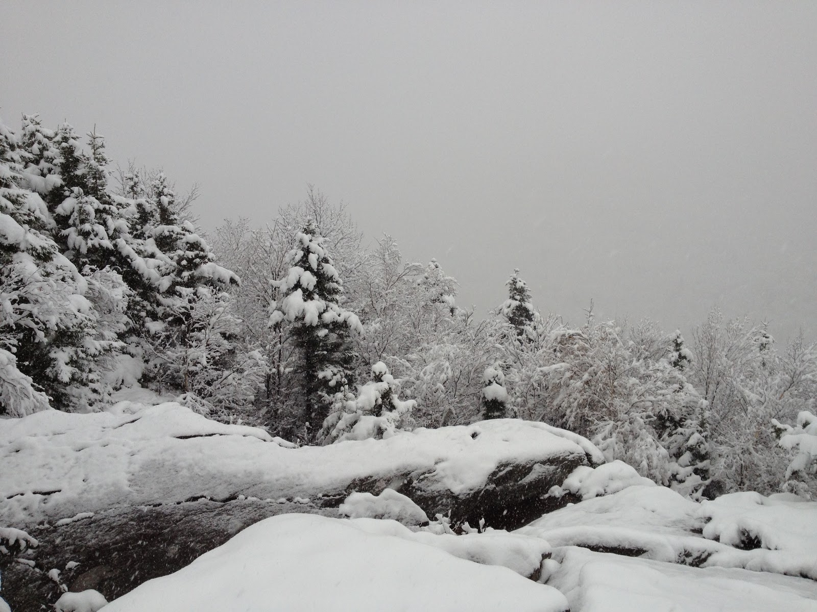 I decided instead of running the same places that didn’t seem to bring any joy these days, I choose to revisit a trail I have not been on much this year, deemed too short for my current training. It was in fact one of the trails two summers ago I ran almost daily passing tourists happily with a smile on my face. Today no tourists were on the trail, no one in fact would in their right mind go out for a run/hike during the first snowstorm of the year, no one except for me trying to recapture the essence that first pulled me into the woods.