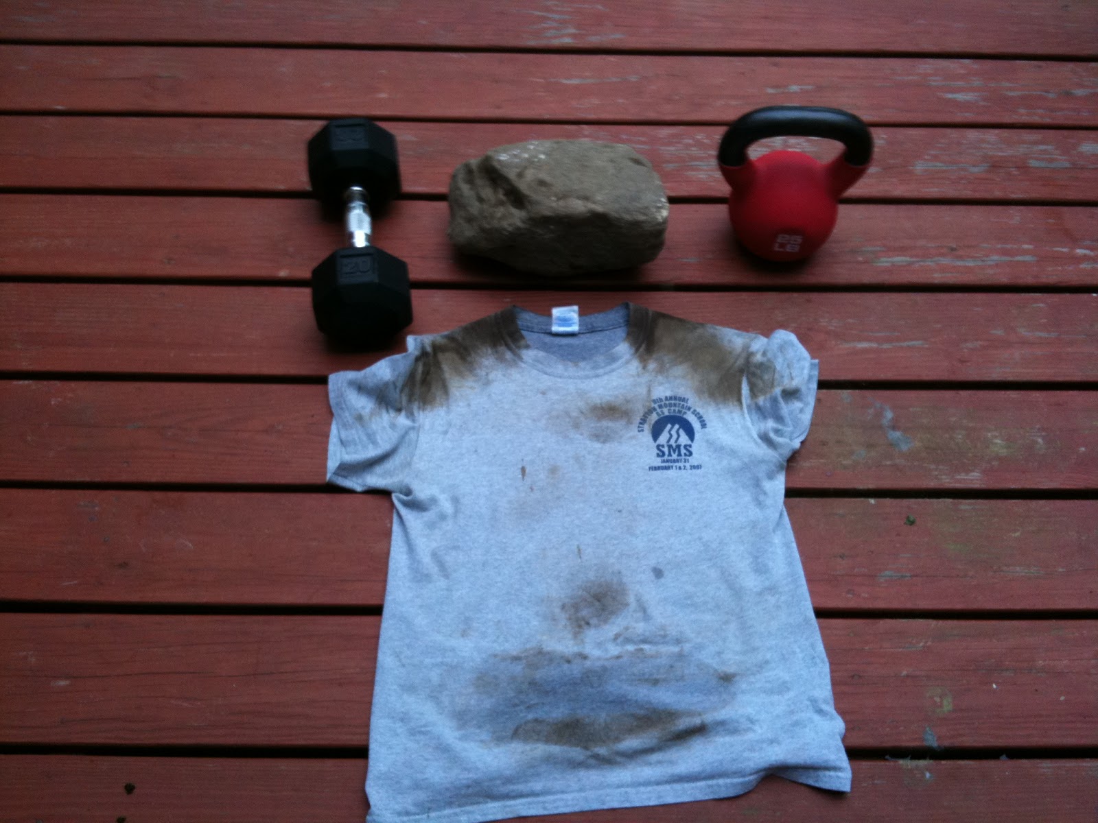 You might be wondering, how big this rock is and what I do with it. Well it weighs about 23lbs and is fairly rectangular. If we go on a run I am either carrying or throwing and chasing after it repeatedly. These runs last anywhere from 2-4 or more miles. I have also done workouts where I continually pick it up and put it down for about 100-200 times, a nod to this year’s Death Racers.
