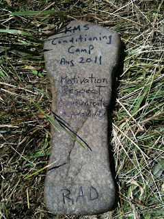 It being the last day of the KMS Dryland Camp, we decided to hike up the mountain and give the kids an alternative workout. For me since I knew I wouldn’t want to do another workout after hiking with them I loaded down my backpack with enough water for a 10 day trek and food to feed a small army. My back with the addition of some weight tipped the scales around 40lbs. I knew it wasn’t going to be a day for speed so decided to turn it into a strength workout.